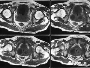 3、前列腺增生:多发中老年,动态增强的早期表现为明显不均匀的强化,强化持续时间较长,动态增强的晚期仍表现为较高的信号。